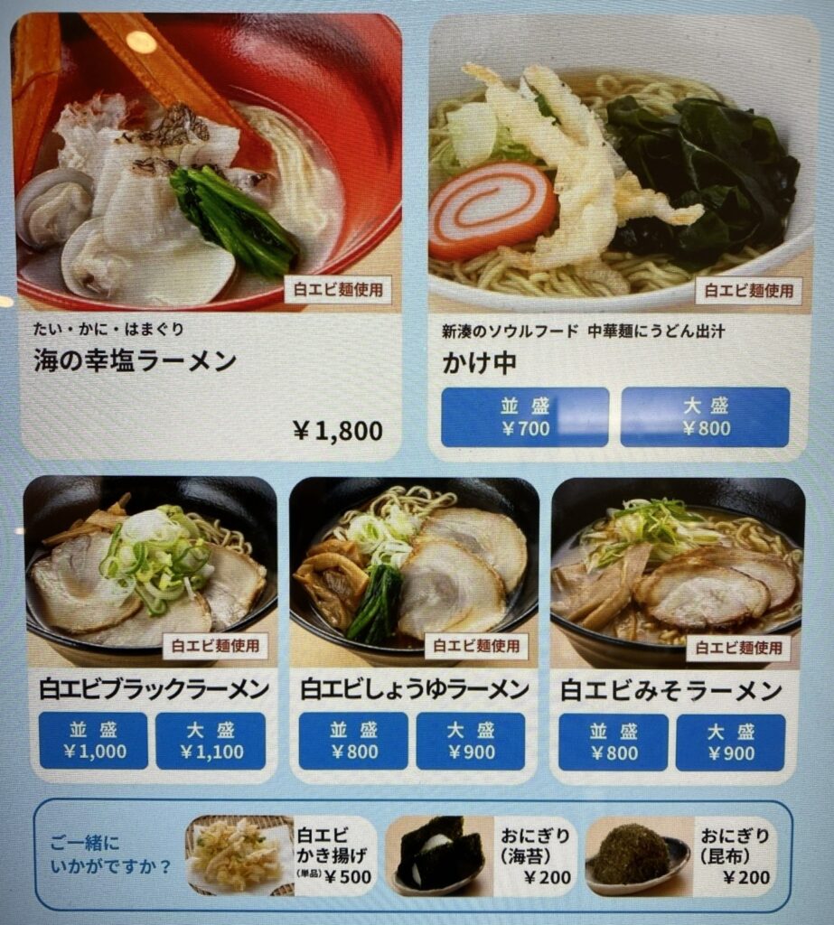 海鮮丼にパスタ、うどんといろいろありますが、やっぱりラーメンにしましょうかね(笑)