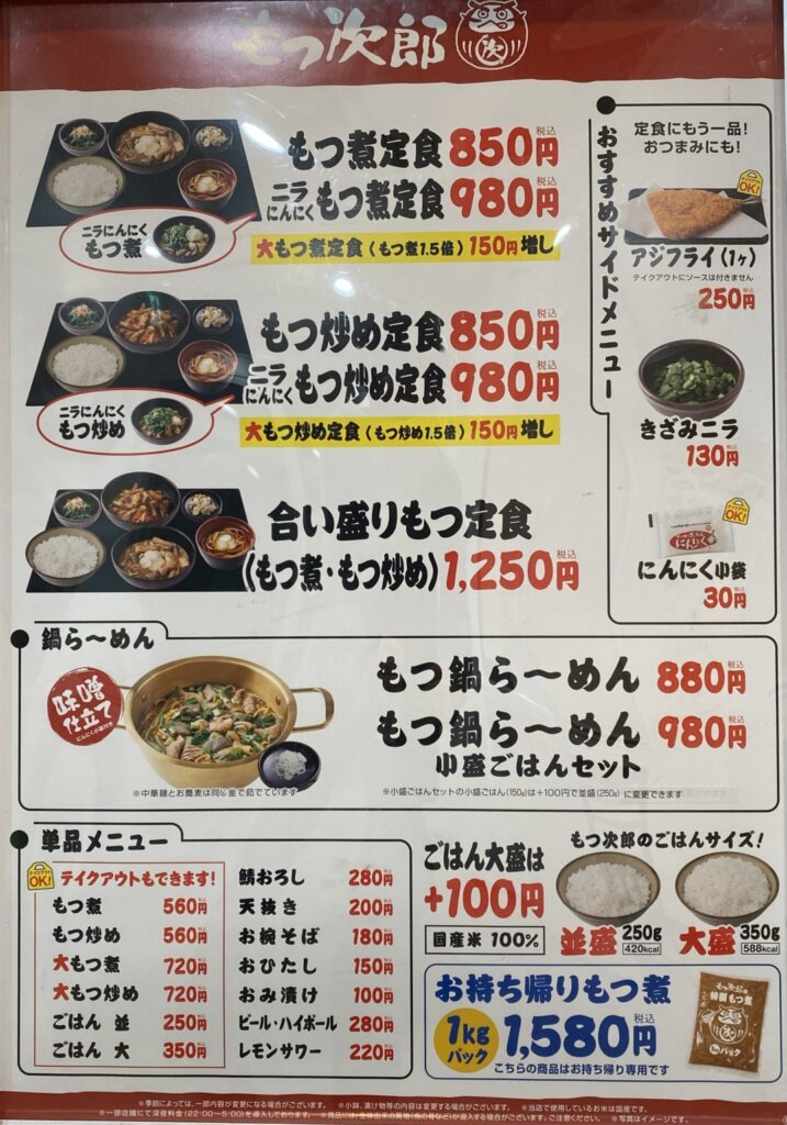 でも、もつ次郎のメニューをいただくのは今回が初めてでしたよ。