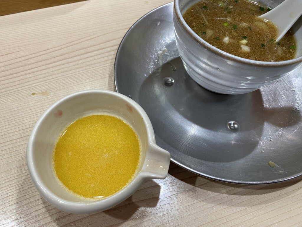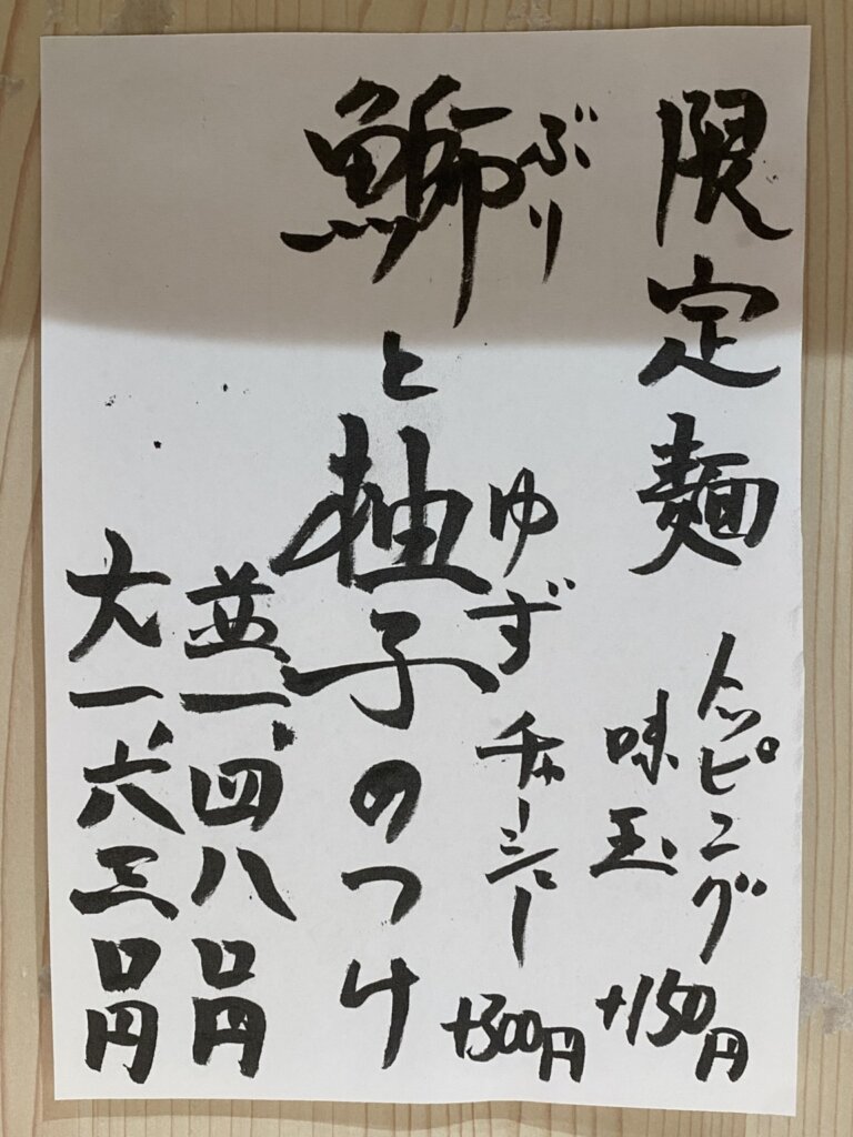 この記事を書き始めて気づいたのですが、食べている間にメニュー名にある柚子をまったく感じませんでした。なぜだろう?と思っていたら、告知のSNSの写真では柚子がしっかりとのっており、単にトッピングをし忘れたようですね(^-^; ブリの刺身も2切れが1切れになっていましたが、その代わりなのかチャーシューがのっていましたよ。