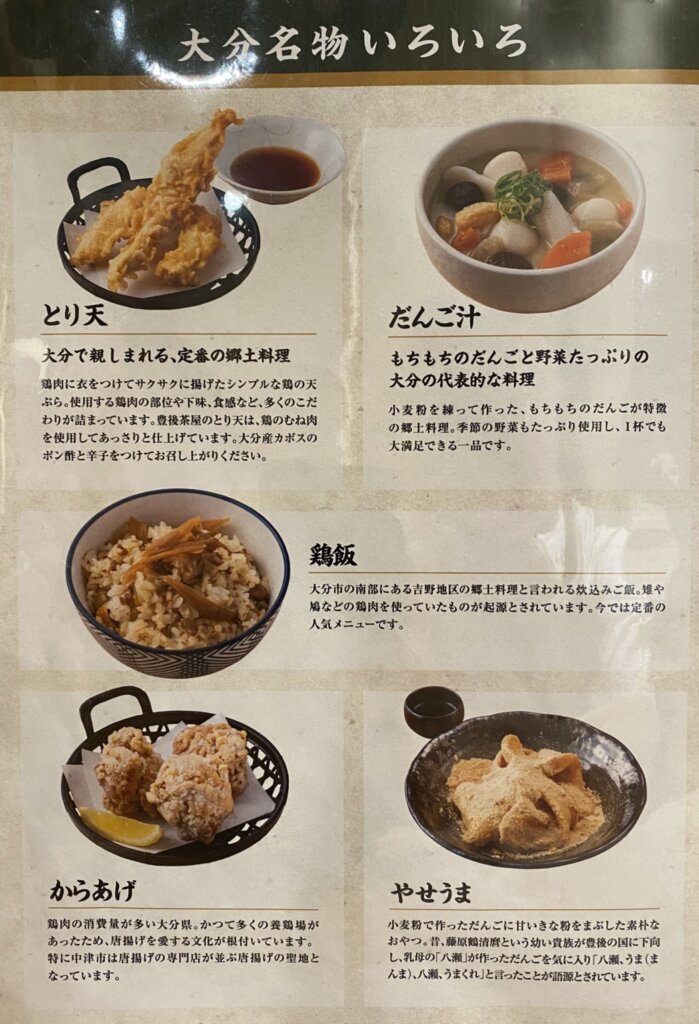 とり天、だんご汁、鶏飯、やせうまです。それぞれの説明は、こちらをご覧くださいね(^_-)-☆