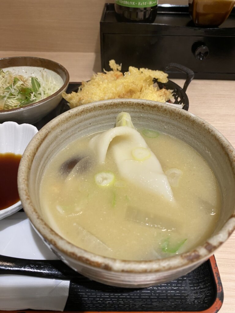 だんご汁のだんごは、だんごと言っても分厚いきしめんのような形でした。もちもちでいいですね~♪