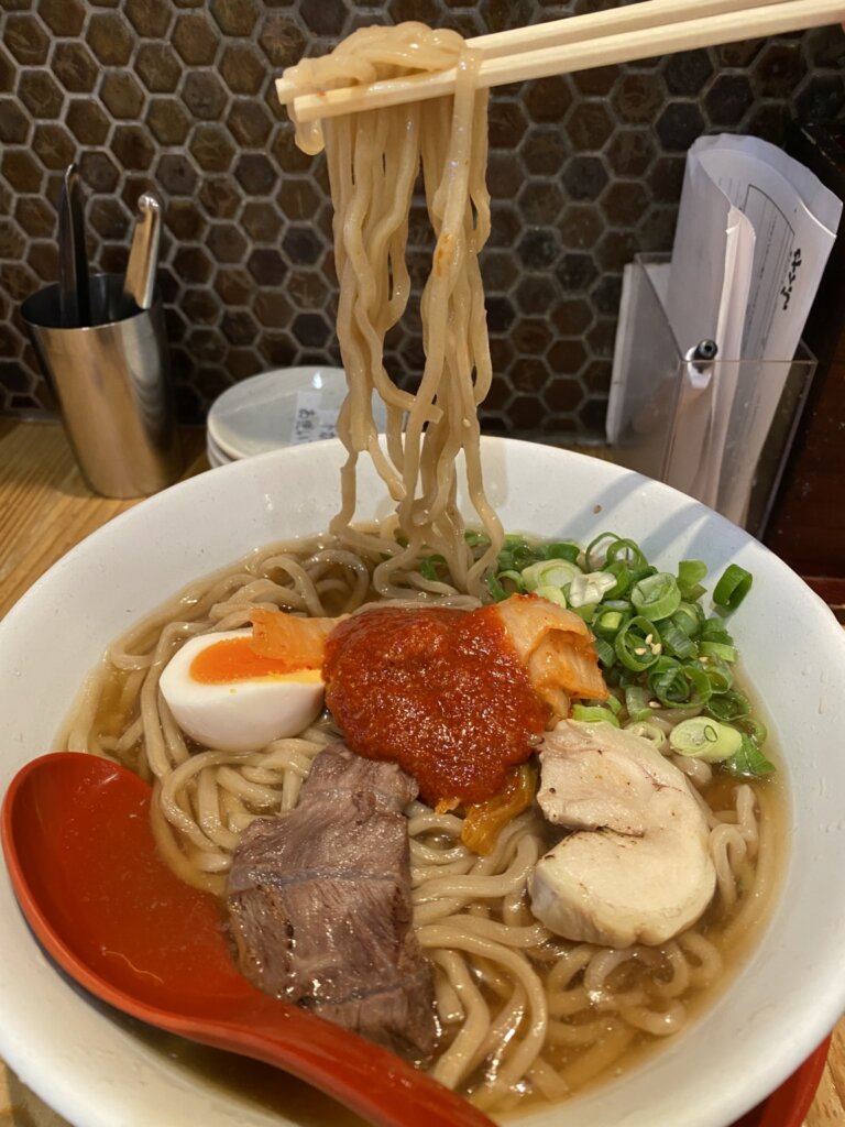 辛さはトッピングする辛味噌(コチュジャン?)の量で調節しているようですが、3辛だとあまり辛くなくて私にはちょうどよかったです。