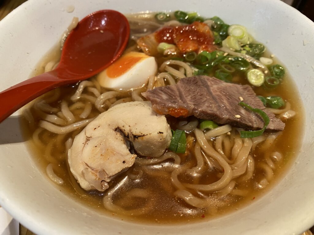 面白いことに、チャーシューは鶏と牛でした。味玉も含めて、トッピングもいい感じでしたよ♪