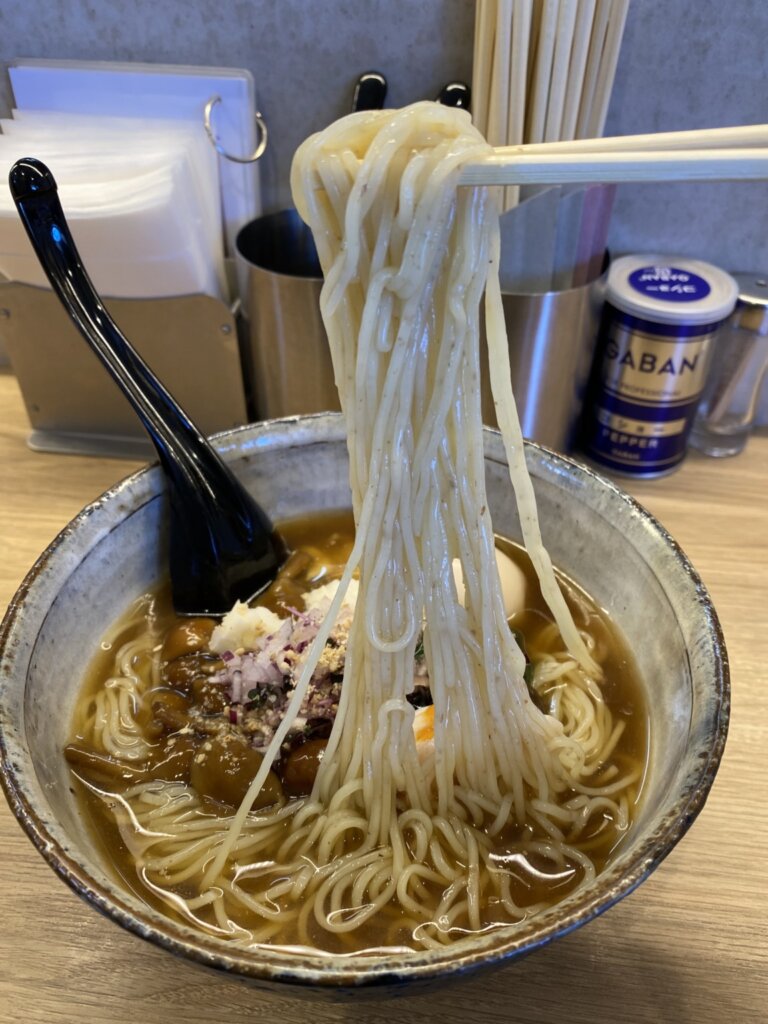 麺は冷水でしっかりとしめられていますが、それでもやわらかめで、そうめんっぽい感じです。スープとの相性バッチリですね♪