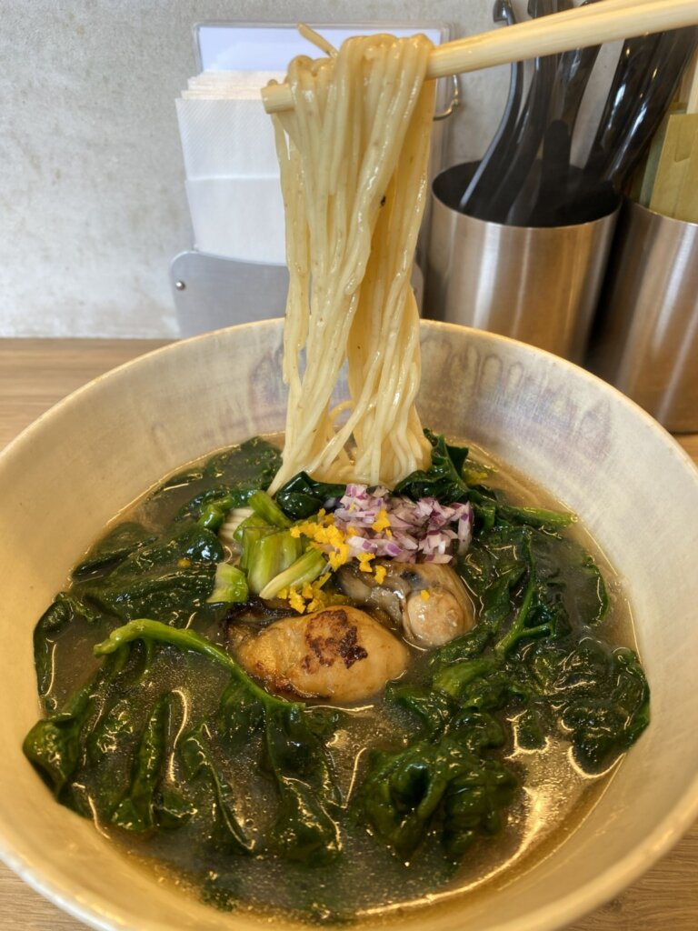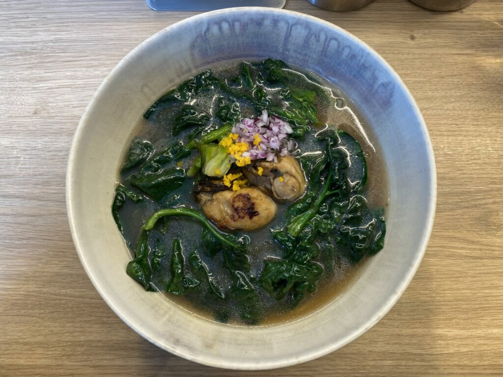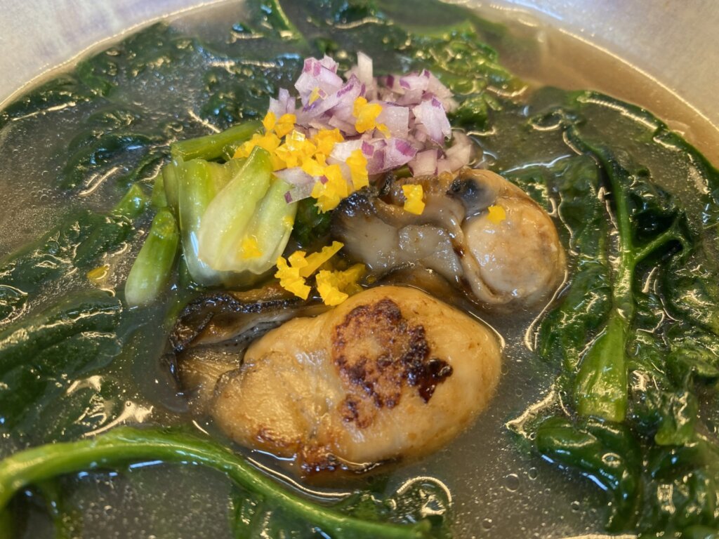 以前は牡蠣はスープのみに使用されていましたが、今回はしっかりと牡蠣の身が丸ごと2個のっていました。そのせいもあってか、スープの風味も牡蠣がだいぶ強くなっているように感じました。