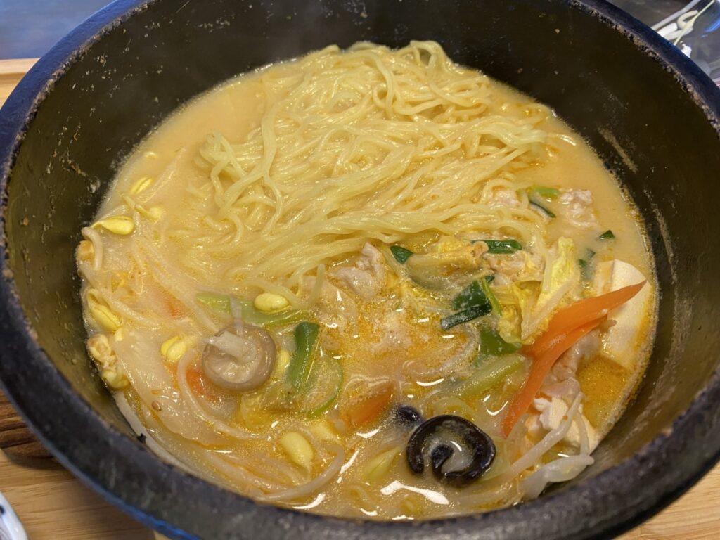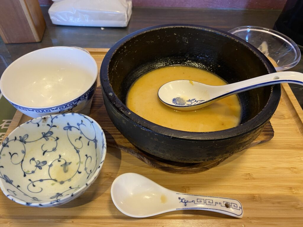 石焼鍋効果で、スープは最後まで熱々でしたよ。
