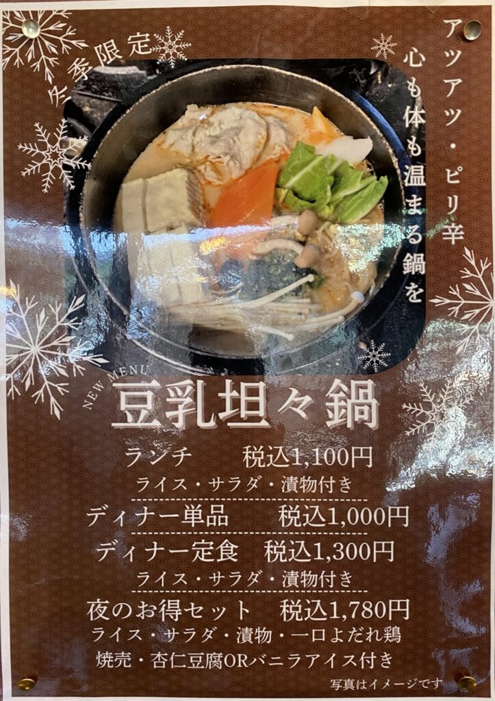 でも、今回はラーメンではなく、「豆乳坦々鍋」にしました。