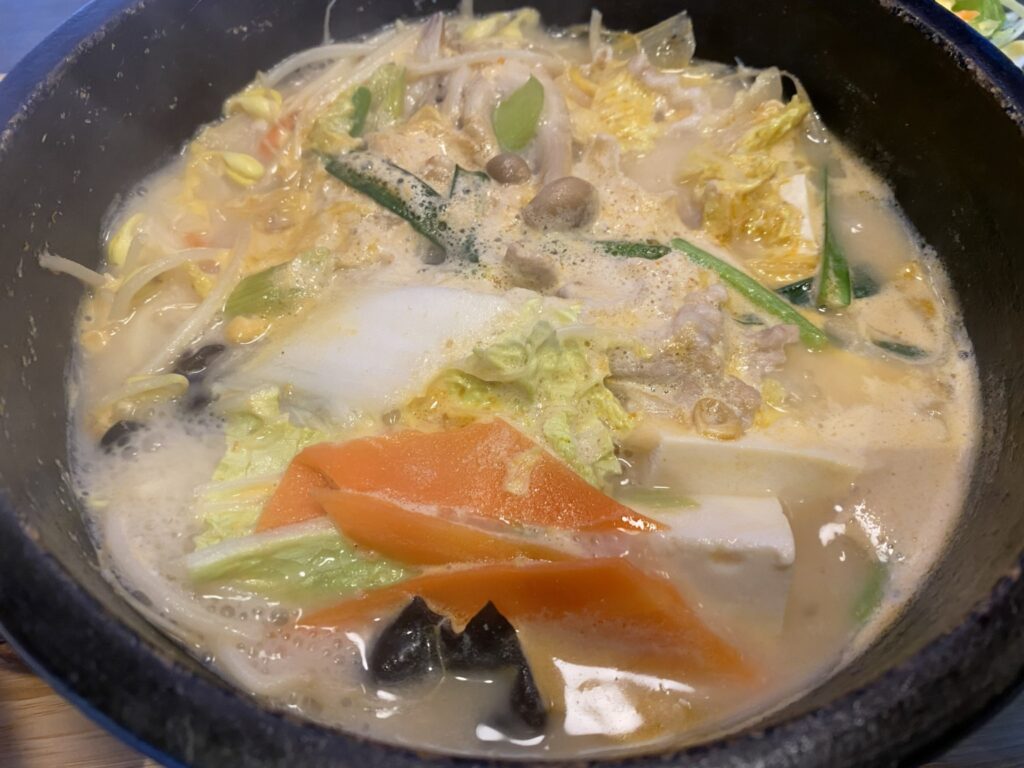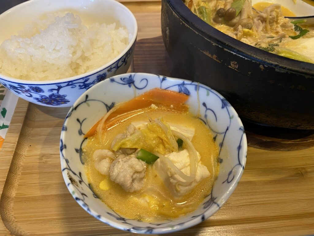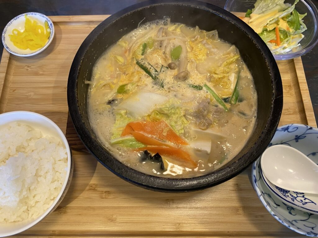 石焼豆乳坦々鍋ランチ(ライス少なめ) 追加麺0.5玉