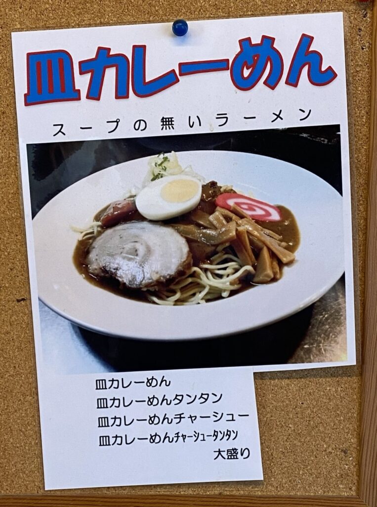 ボードメニューの「皿カレーめん」にしました。まあ、私の場合、まるこん(MK)さんに皿カレーめんを教えてもらってからは、2回に1回は皿カレーめんなんですけどね(笑)