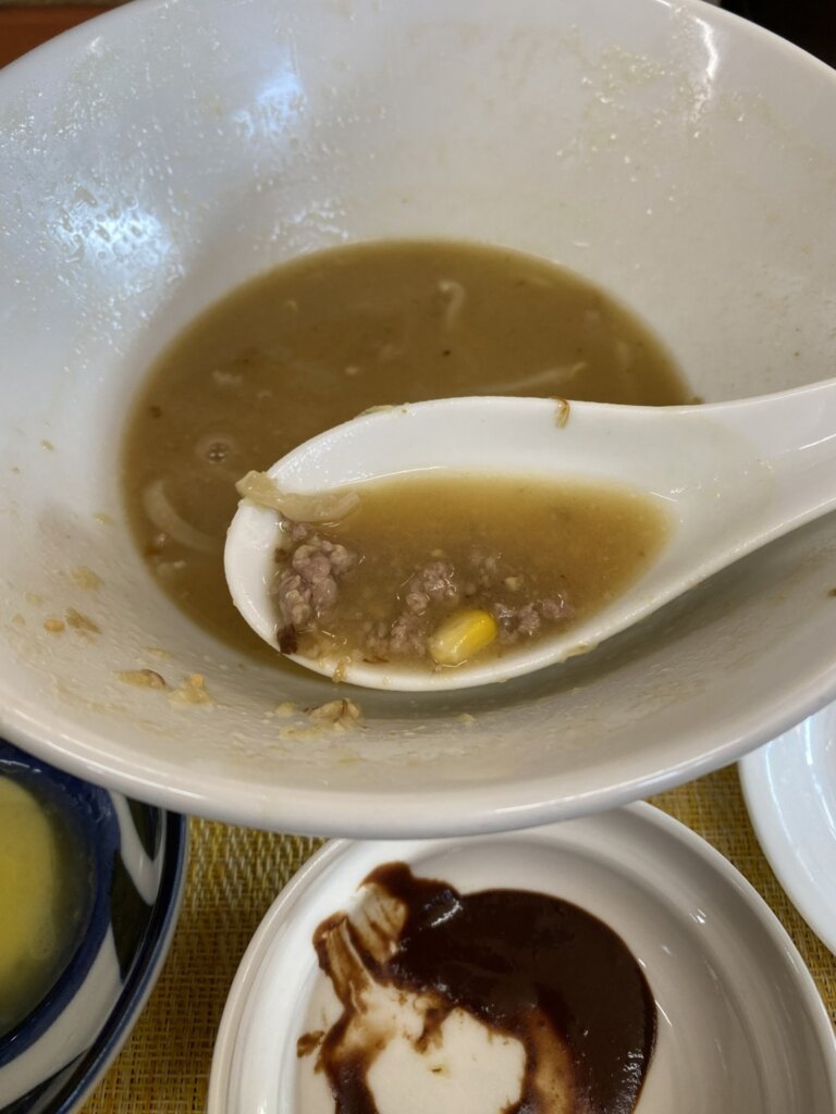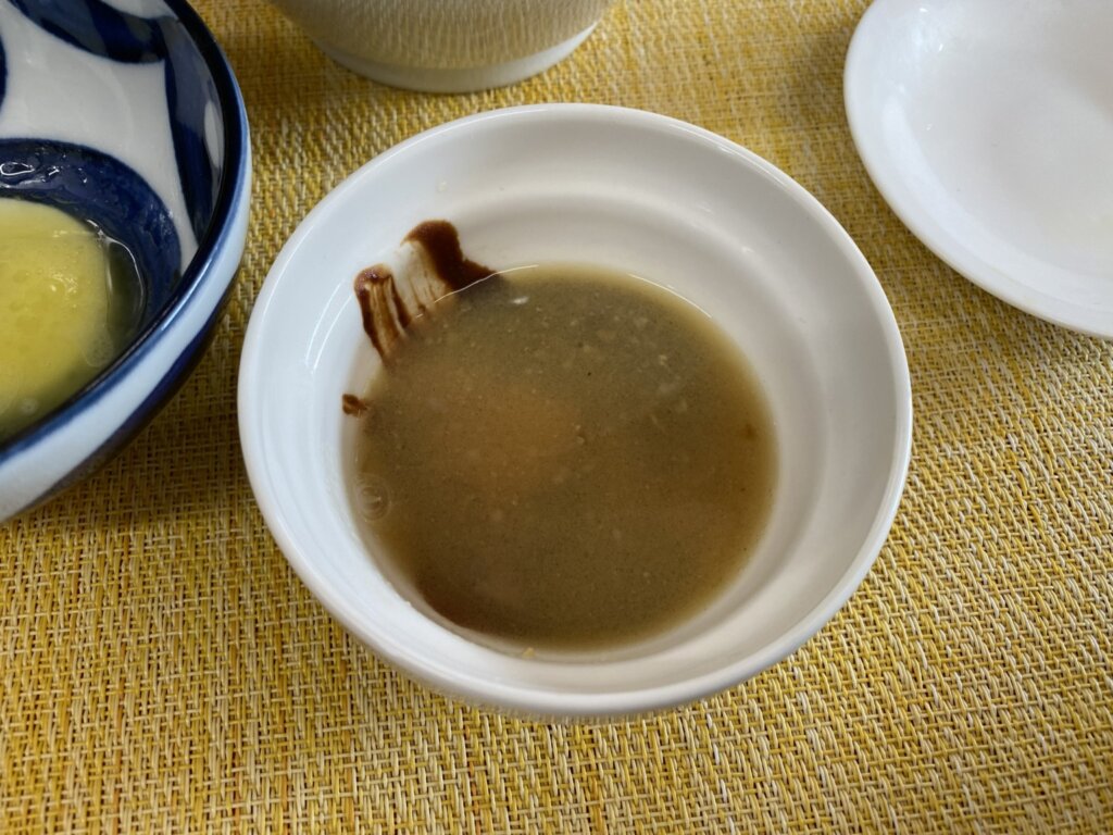 最後には、大将のおススメである、残ったチョコ味噌ソースで味変したスープも楽しみました。このチョコ風味のスープも美味しかったですよ~!(^^)!