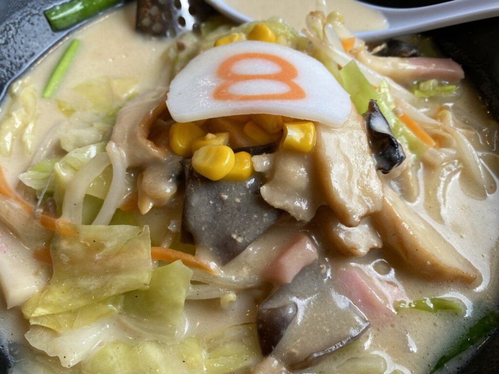 でも今回は、具材の後乗せ感が強く、ちゃんぽんっぽさよりも野菜らーめんらしさのほうが強く感じましたね。まあ、それも8番らしくていいんですけどね♪ そもそもこのメニュー、初回登場時はちゃんぽんではなく、「とんこつ白湯らーめん」という名前でしたしね。