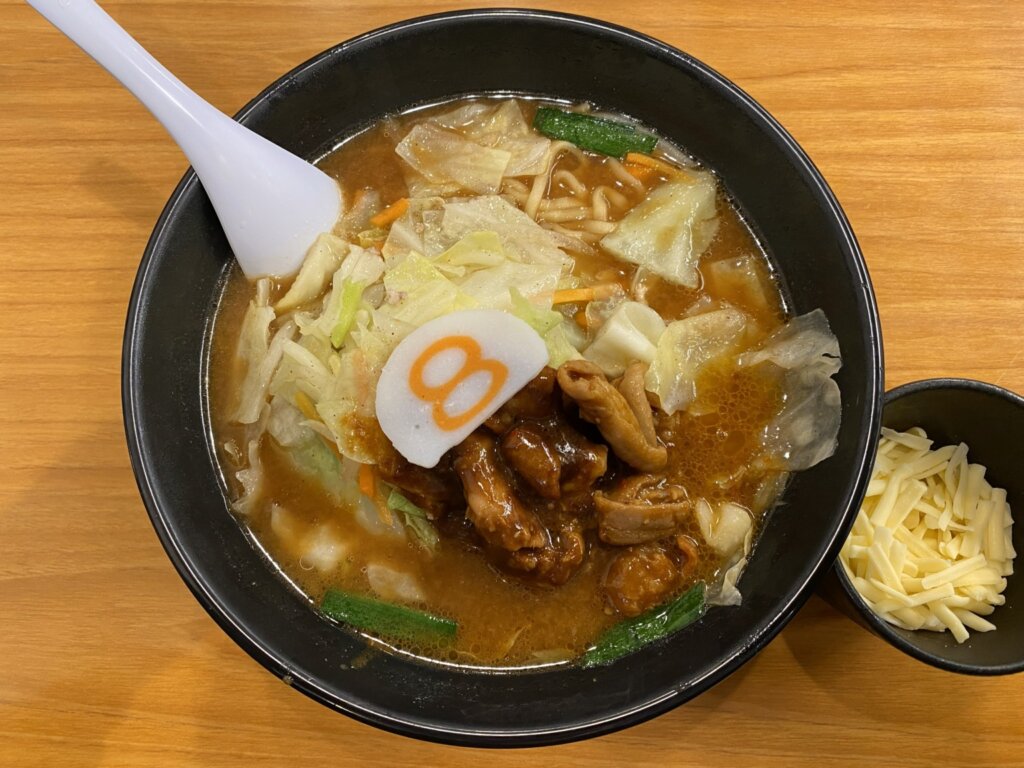 野菜牛もつ煮らーめん + とろけるチーズ & 鶏の唐揚げ