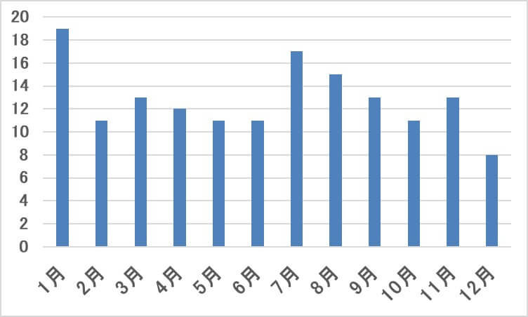 今年1年の月ごとの杯数は次のようになっています: