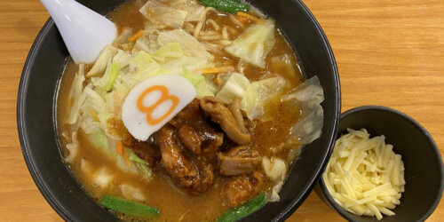 野菜牛もつ煮らーめん + とろけるチーズ & 鶏の唐揚げ 8番らーめん 笠舞...