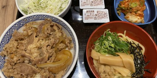 牛丼・ミニ油そばセット & 生野菜サラダ キムチ 吉野家 新4号線上三川店 ...
