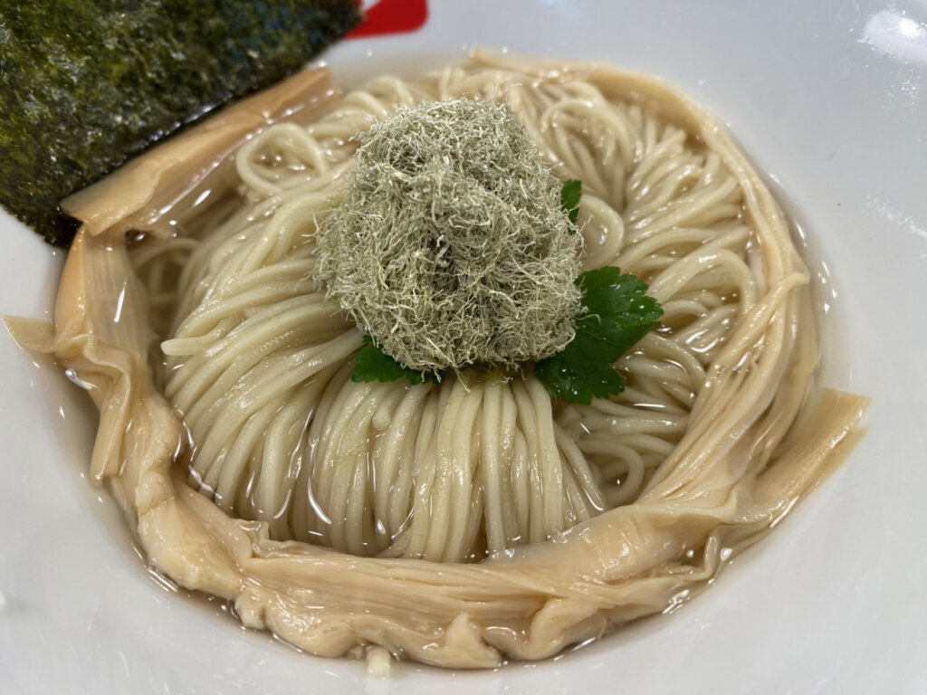 麺はけっこう細いのですが、氷水でしっかりと締められており、パツっとした食感がたまりませんね(^^♪ 小麦の風味と昆布水の旨味が合わさると、ほんと絶品です!!