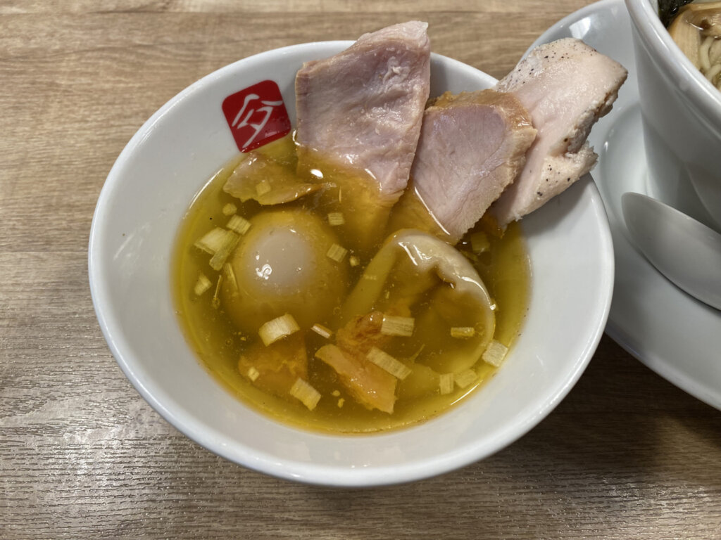 麺をこちらにつけて味わうと、思いっきり雰囲気が変わるのが面白いですよね~♪ 豚&醤油の時ほどの感動はありませんでしたが、トッピングも含めて、やっぱりすべてが美味しかったです!