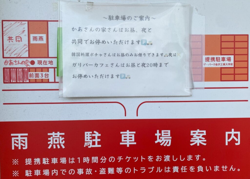 駐車場は店舗前にありますが、ちょっと離れたところに提携駐車場もあります。