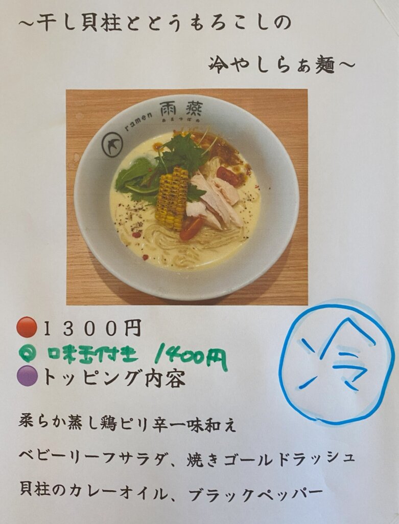干し貝柱ととうもろこしの冷やしらぁ麺 点心セット